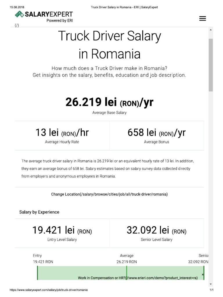 Truck Driver Salary In Romania Eri Salaryexpert Pdf